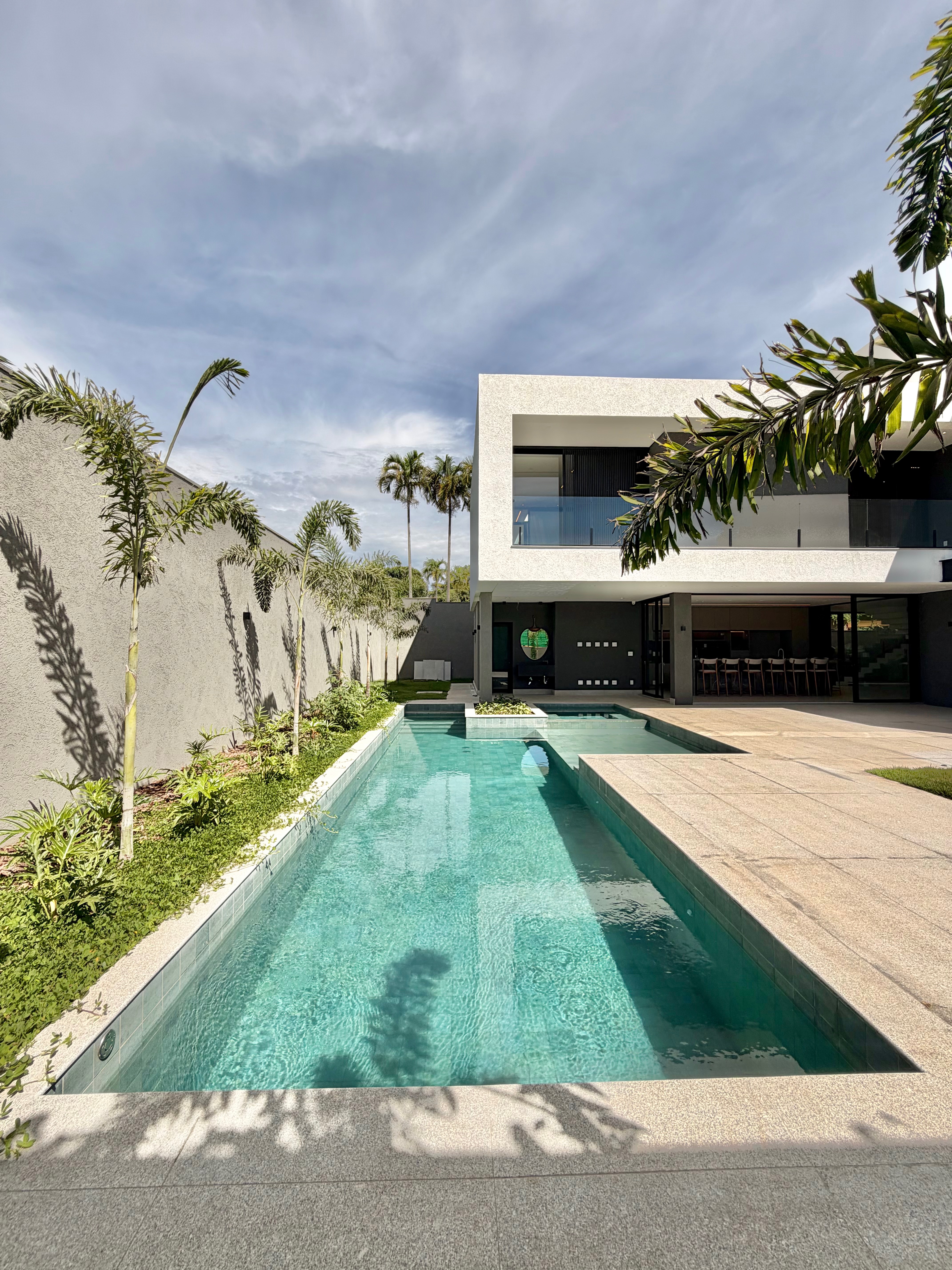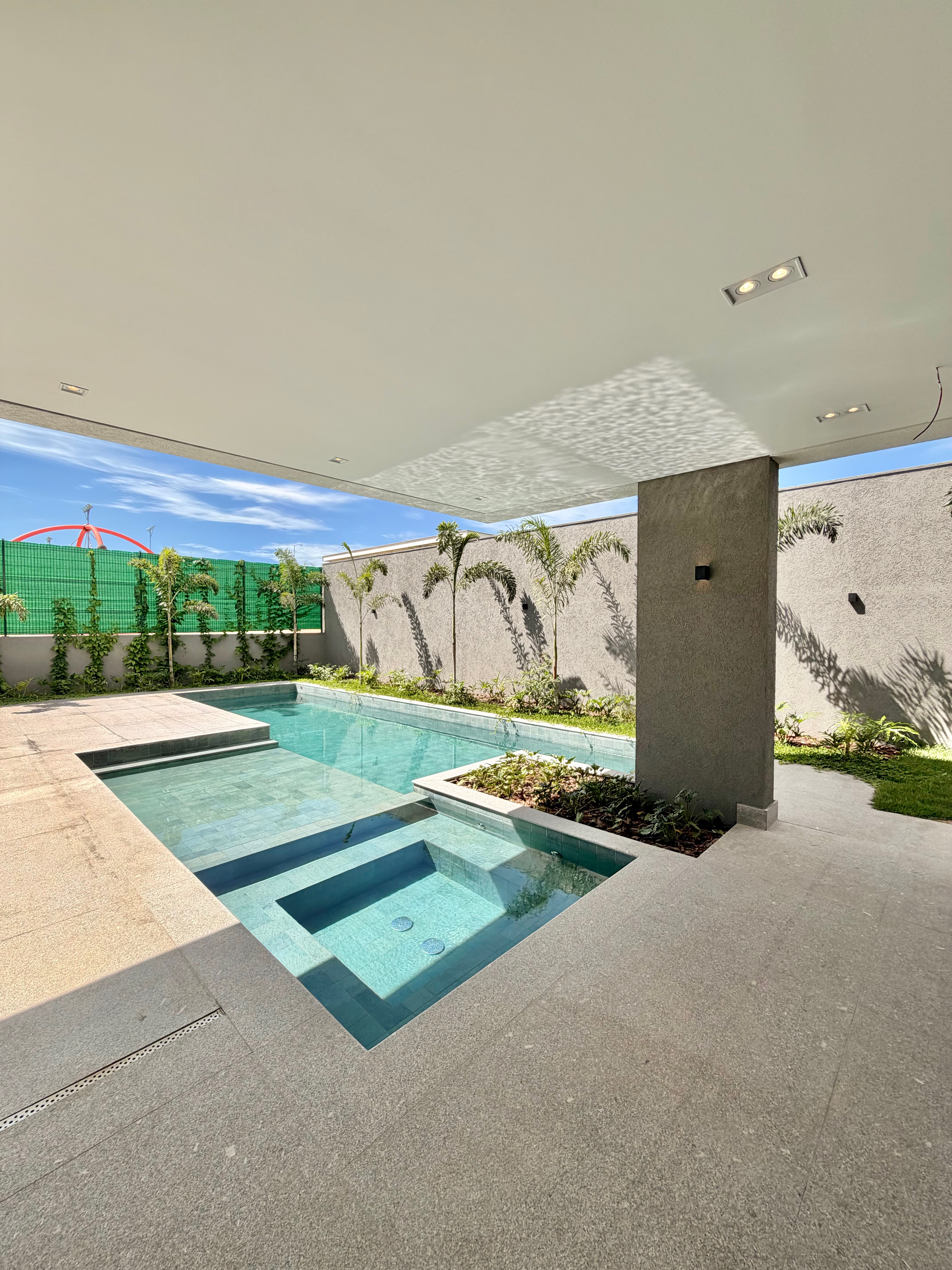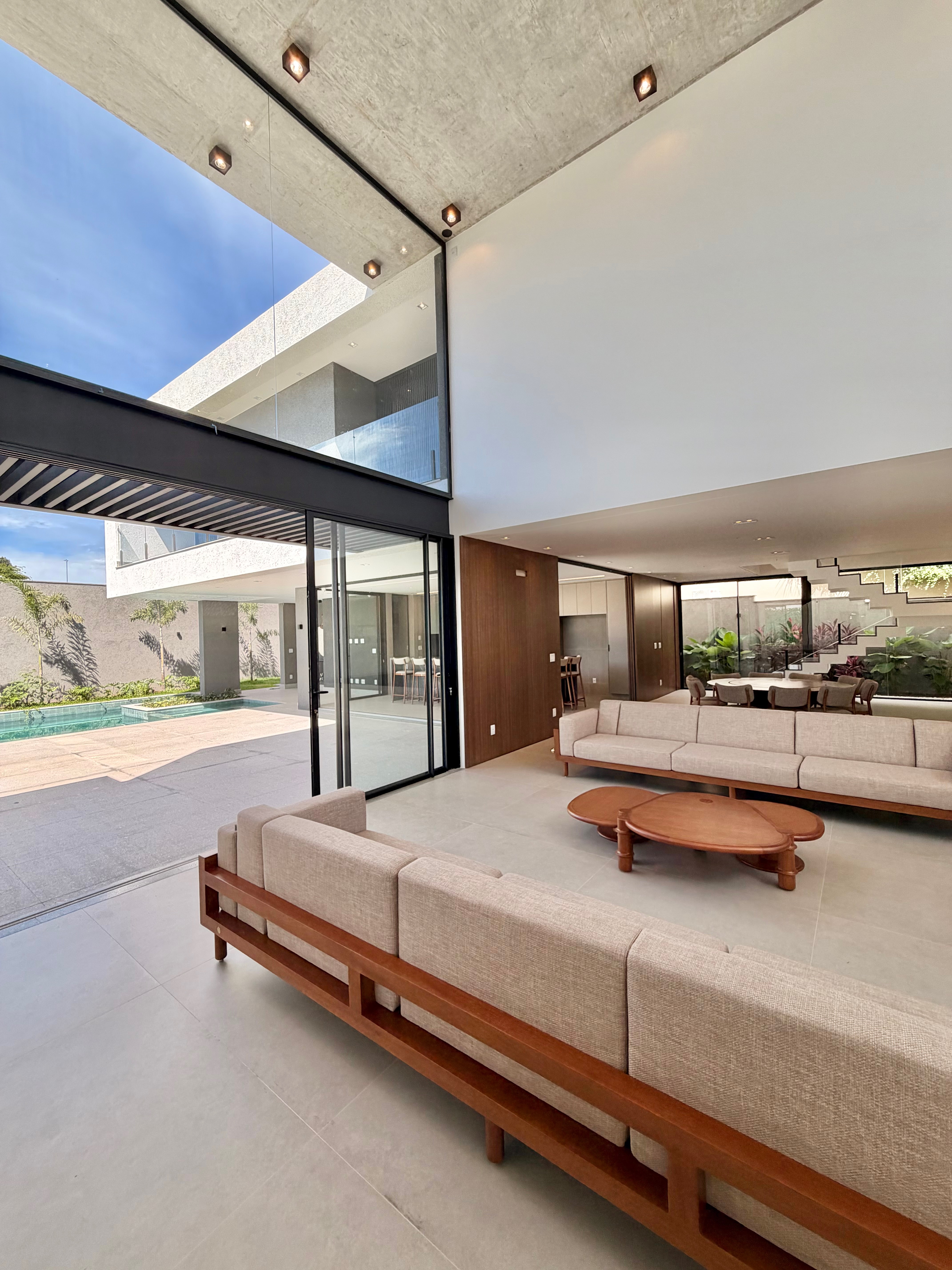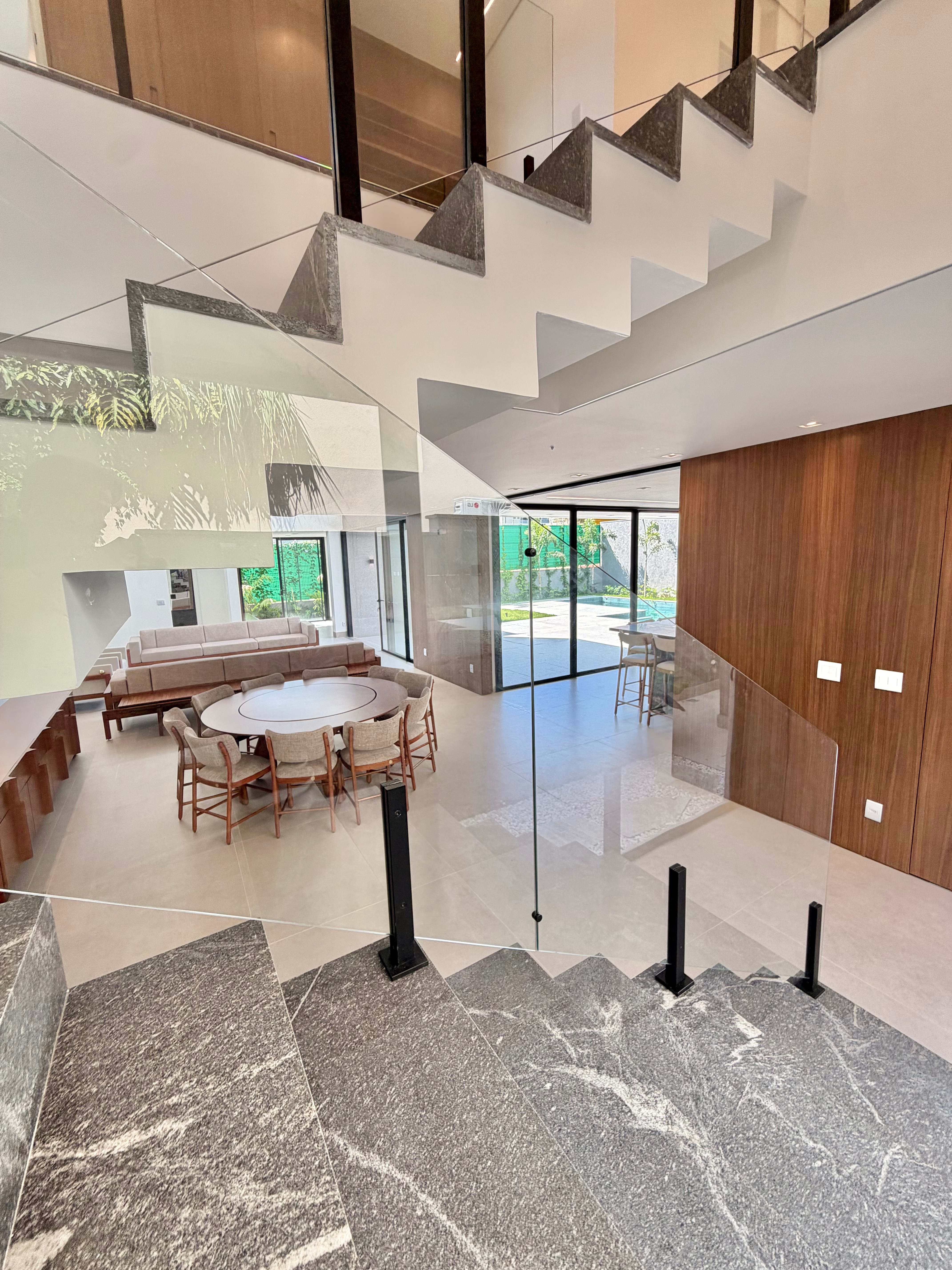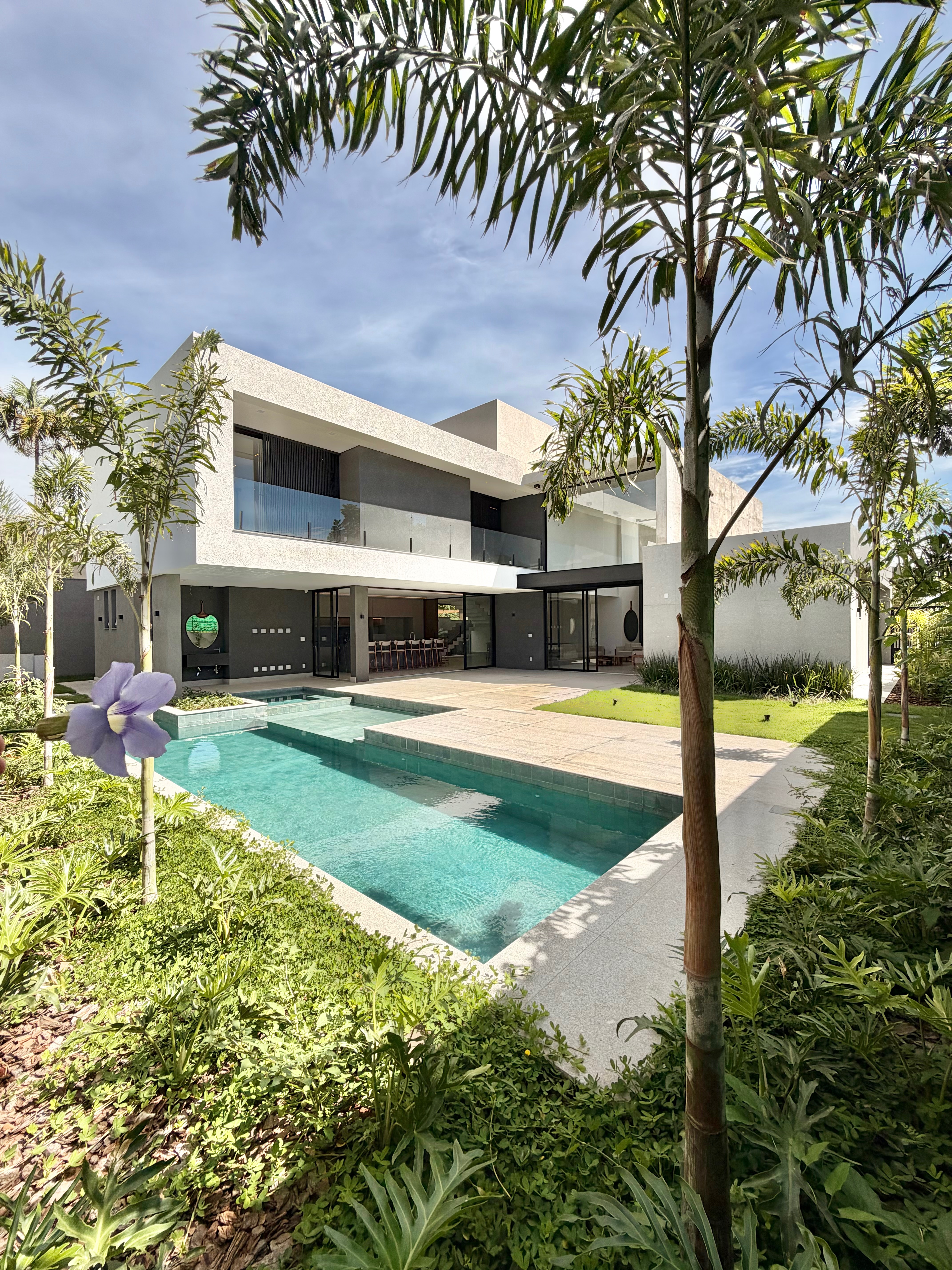 O imóvel conta com 5 suítes, sendo uma no pavimento térreo, além de home cinema e uma ampla área gourmet integrada à área de lazer, com piscina imponente, ideal para receber com conforto e elegância.