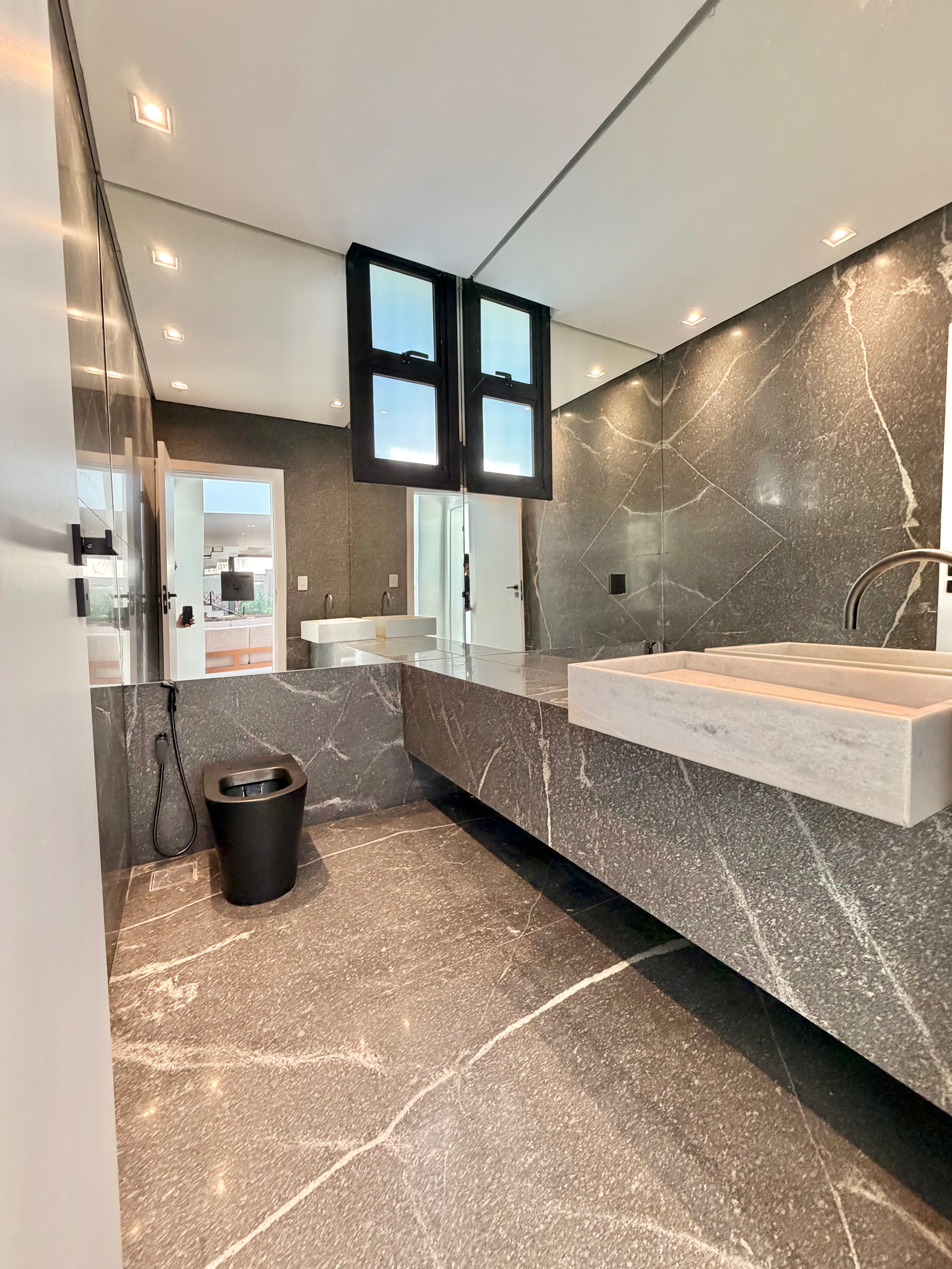 Os acabamentos reforçam o padrão elevado do imóvel, com pedras e bancadas da Gruta Mármores, louças e metais Deca e marcenaria completa da grife Paulete, presente em todos os ambientes. O sistema de câmeras e monitoramento garante mais segurança e tranquilidade.