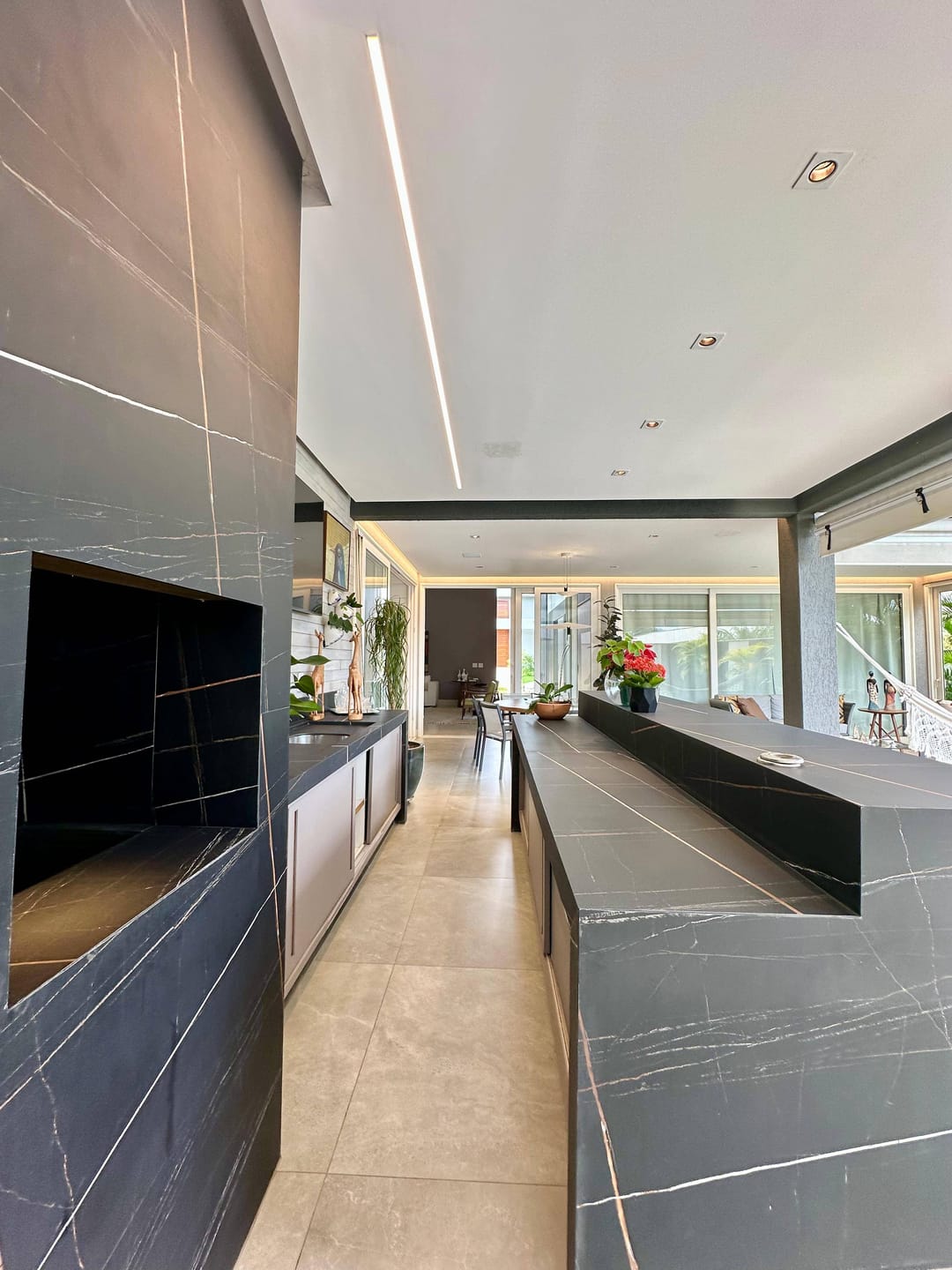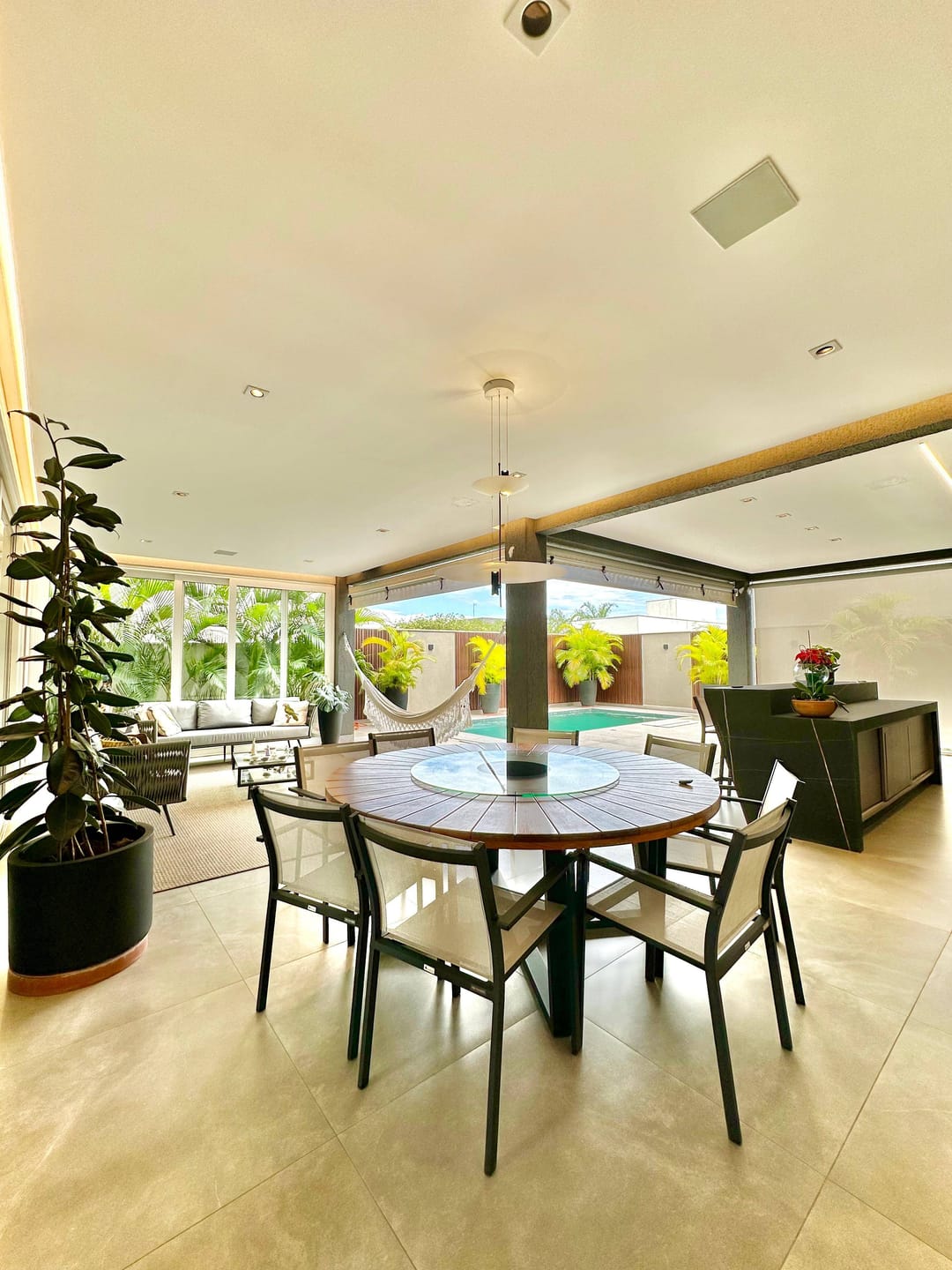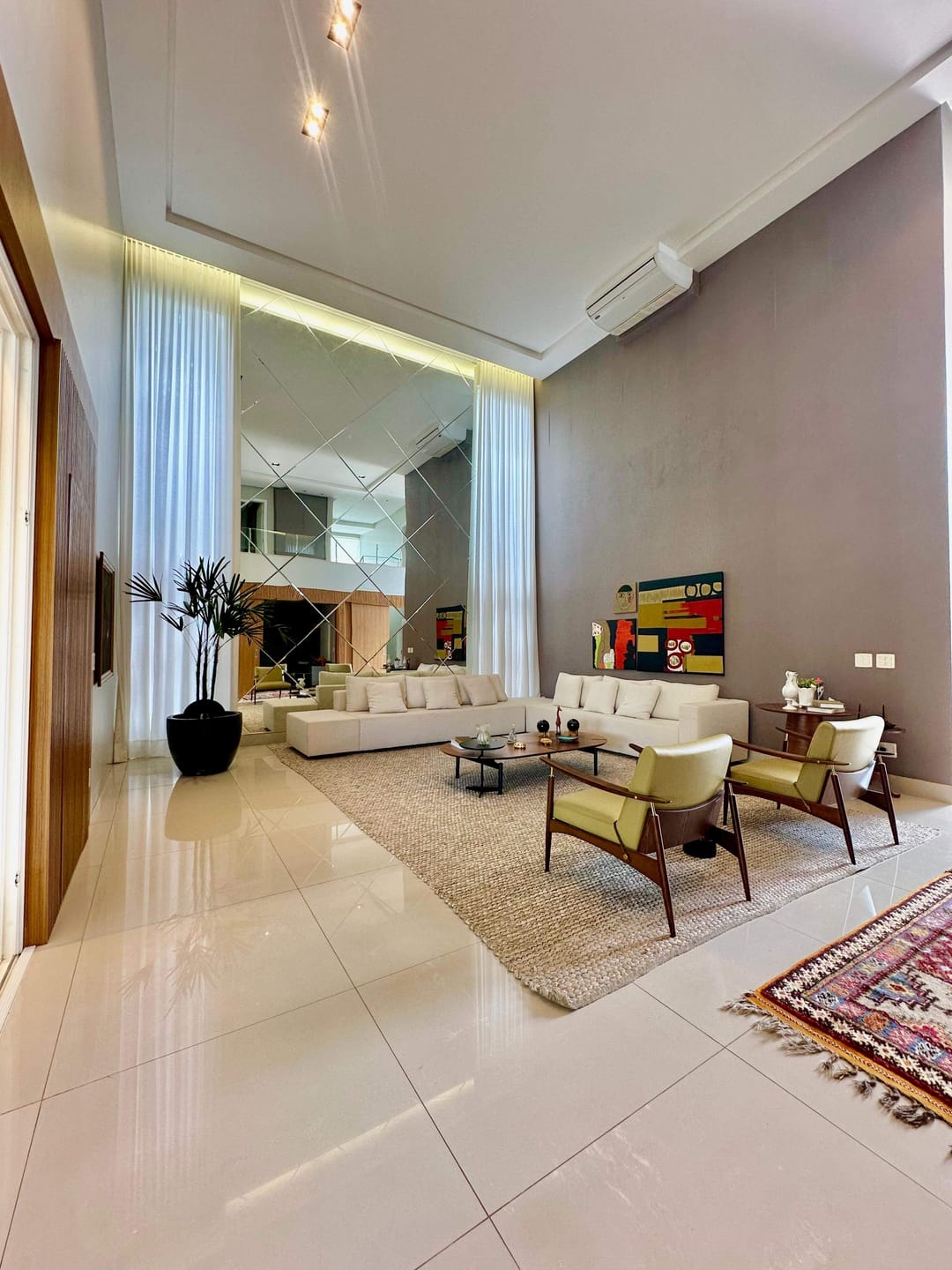 Piso térreo com uma espaçosa sala com pé direito duplo para 03 ambientes