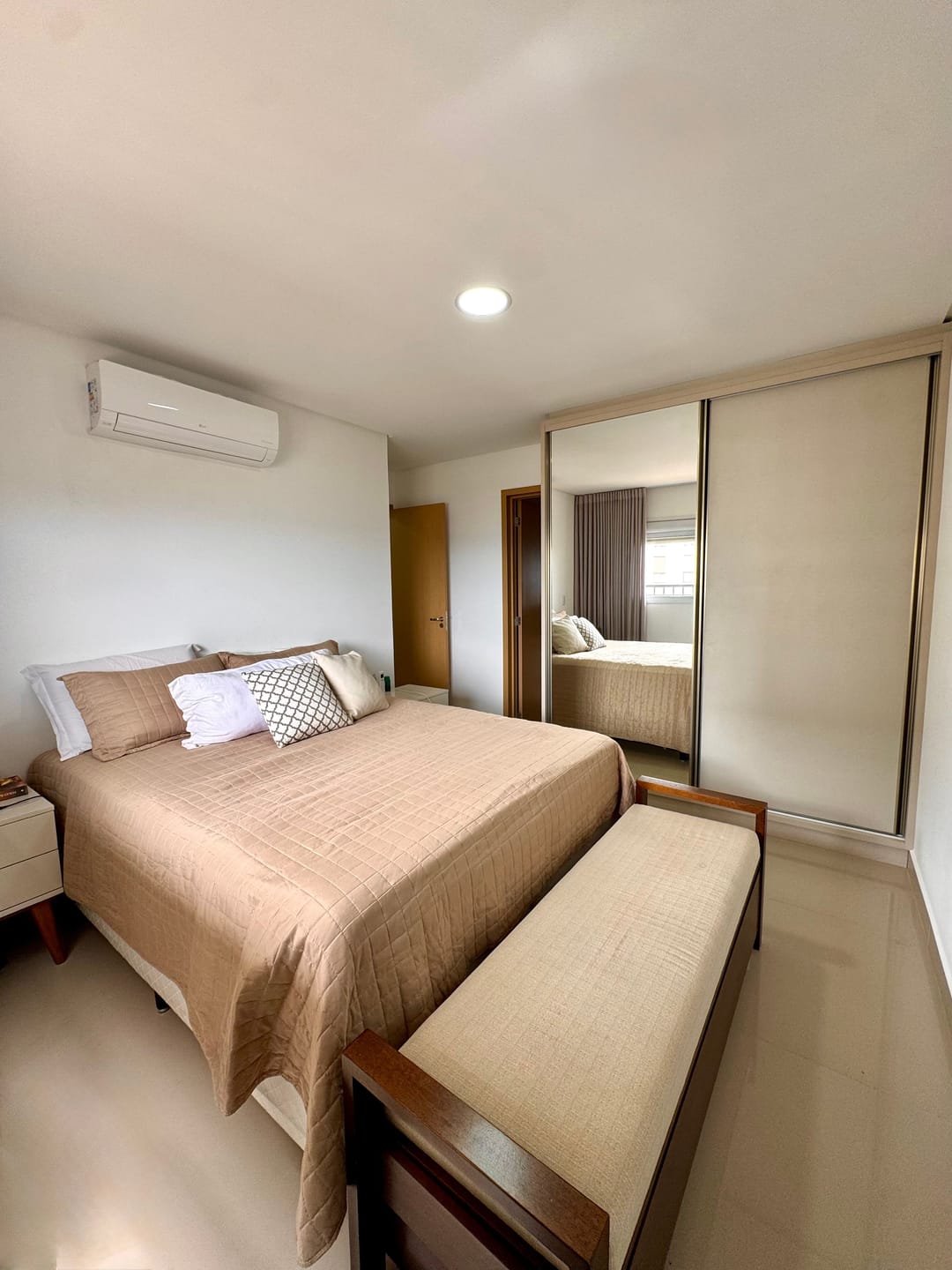 São 65 m² bem distribuídos, com 2 quartos, sendo 1 suíte, sala integrada, varanda e ótima iluminação natural por ser nascente. O imóvel conta com marcenaria completa, garantindo praticidade, organização e um acabamento mais sofisticado para o dia a dia.