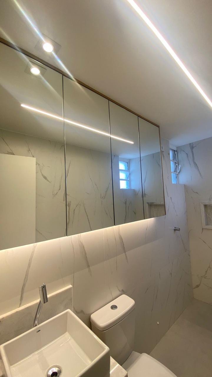 Apartamento 100% reformado. Sala em tábua corrida restaurada, porcelanato novo, bancadas, torneiras e cubas novas, marcenaria nunca usada, portas e fechaduras novas, fiação elétrica nova e iluminação toda em led.