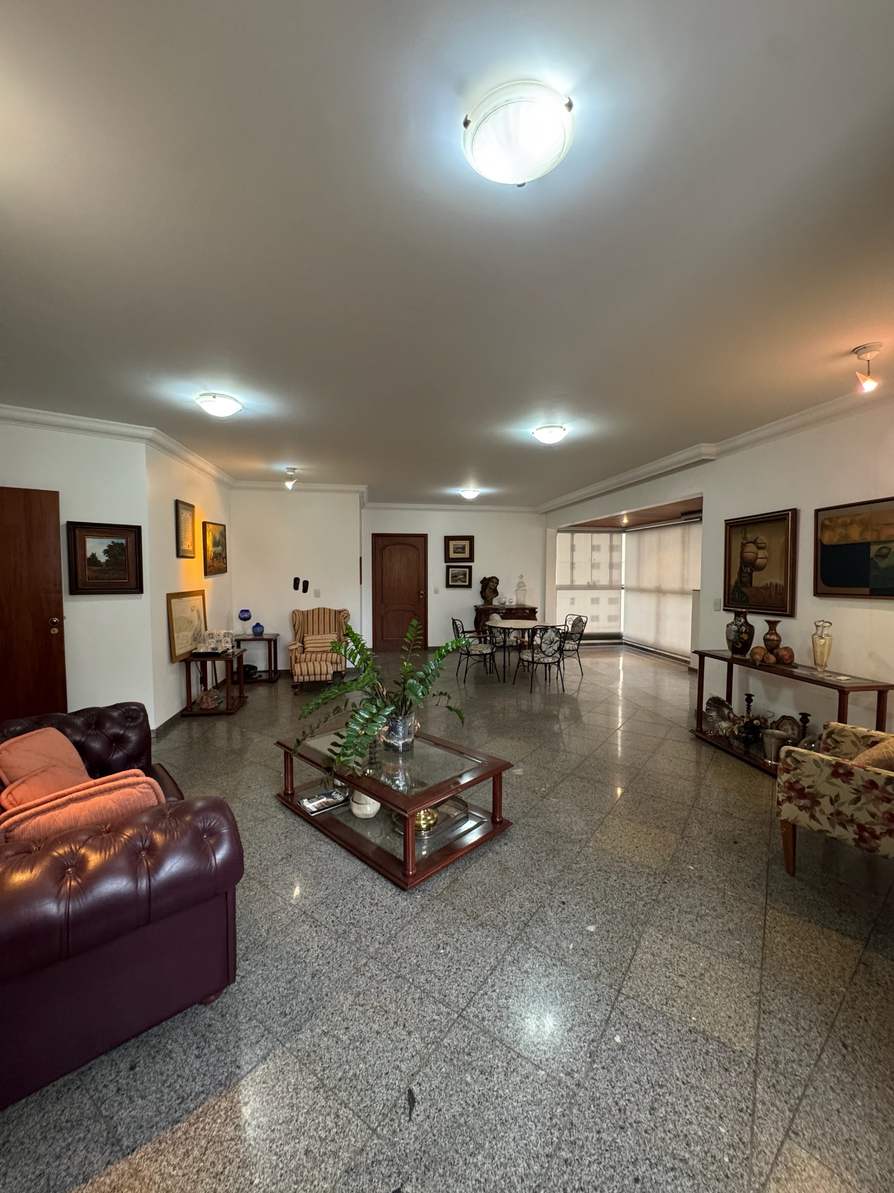 Sala de jantar espaçosa com varanda e escritório. Ampla sala 2 ambientes, integrada à varanda e um belo lavabo.