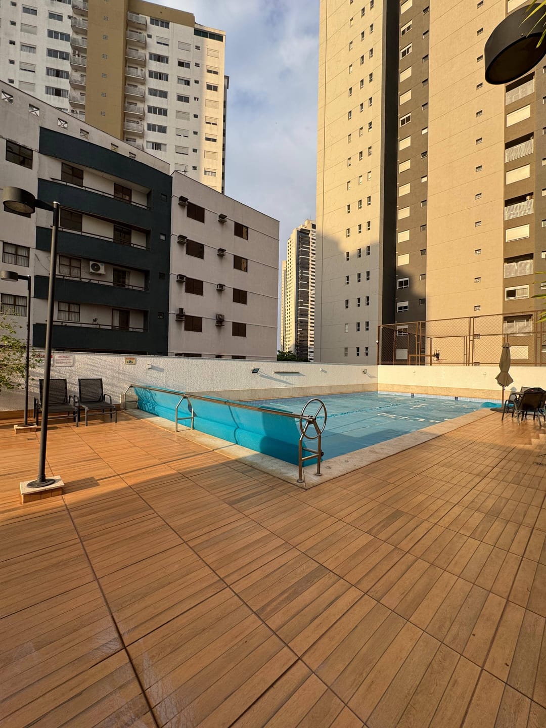 Em frente ao maior parque de Goiânia, o Parque Flamboyant, este apartamento possui 3 suítes plenas, com 128 m2, varanda gourmet, lavabo, cozinha ampla e integrada, sala 2 ambientes e está completo em armários planejados.
