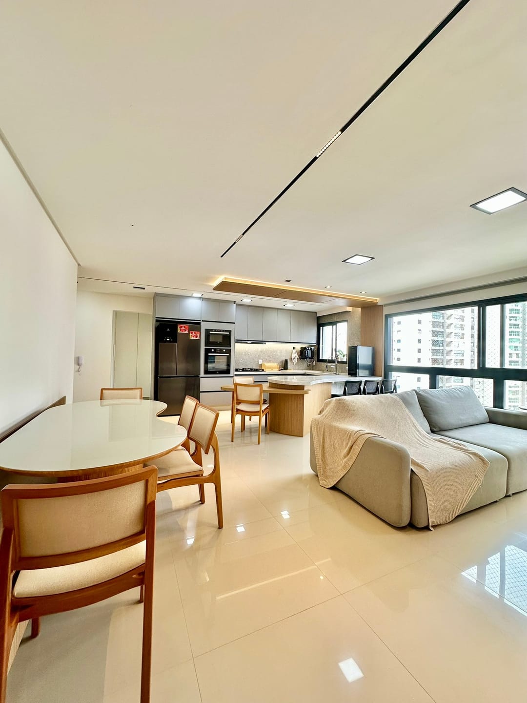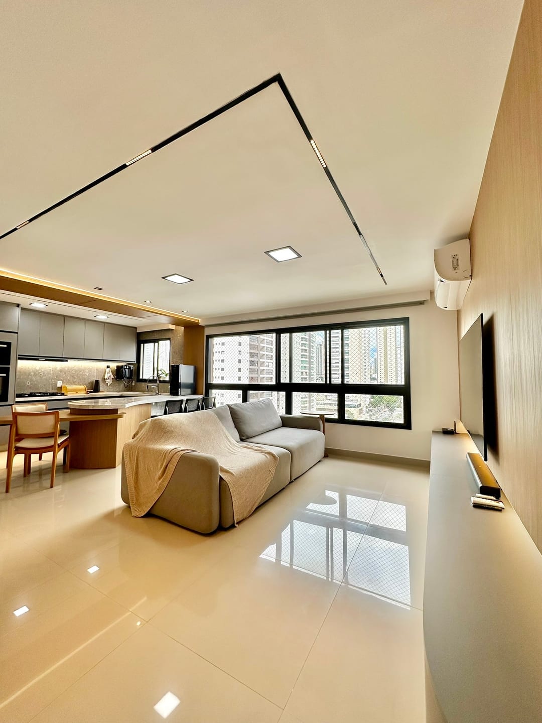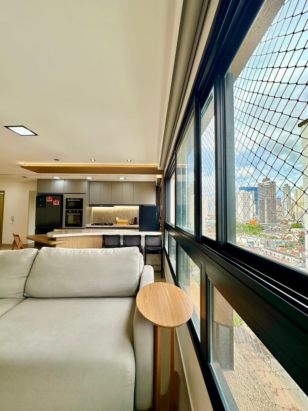 Sala para 2 ambientes integrados com a cozinha.