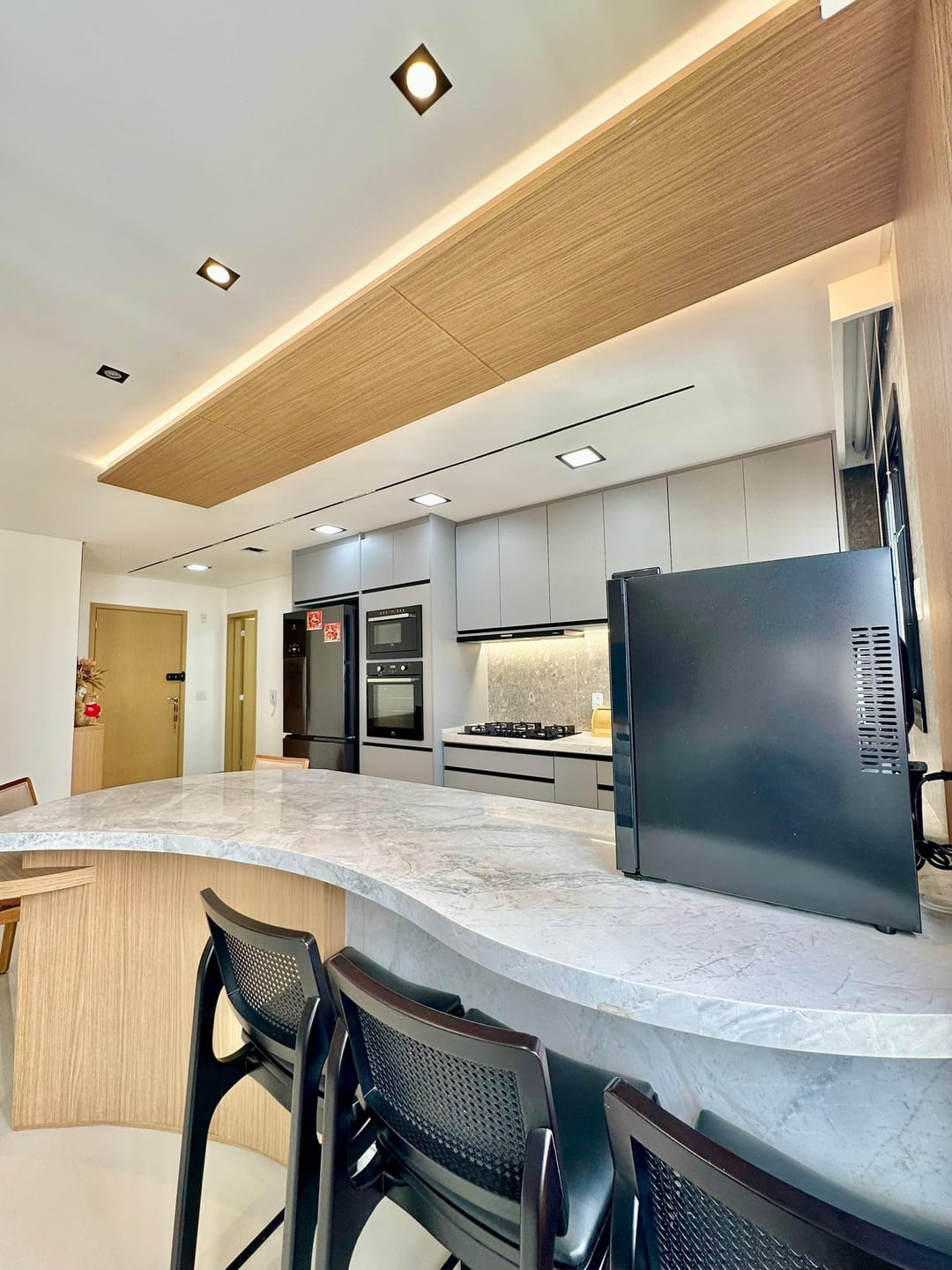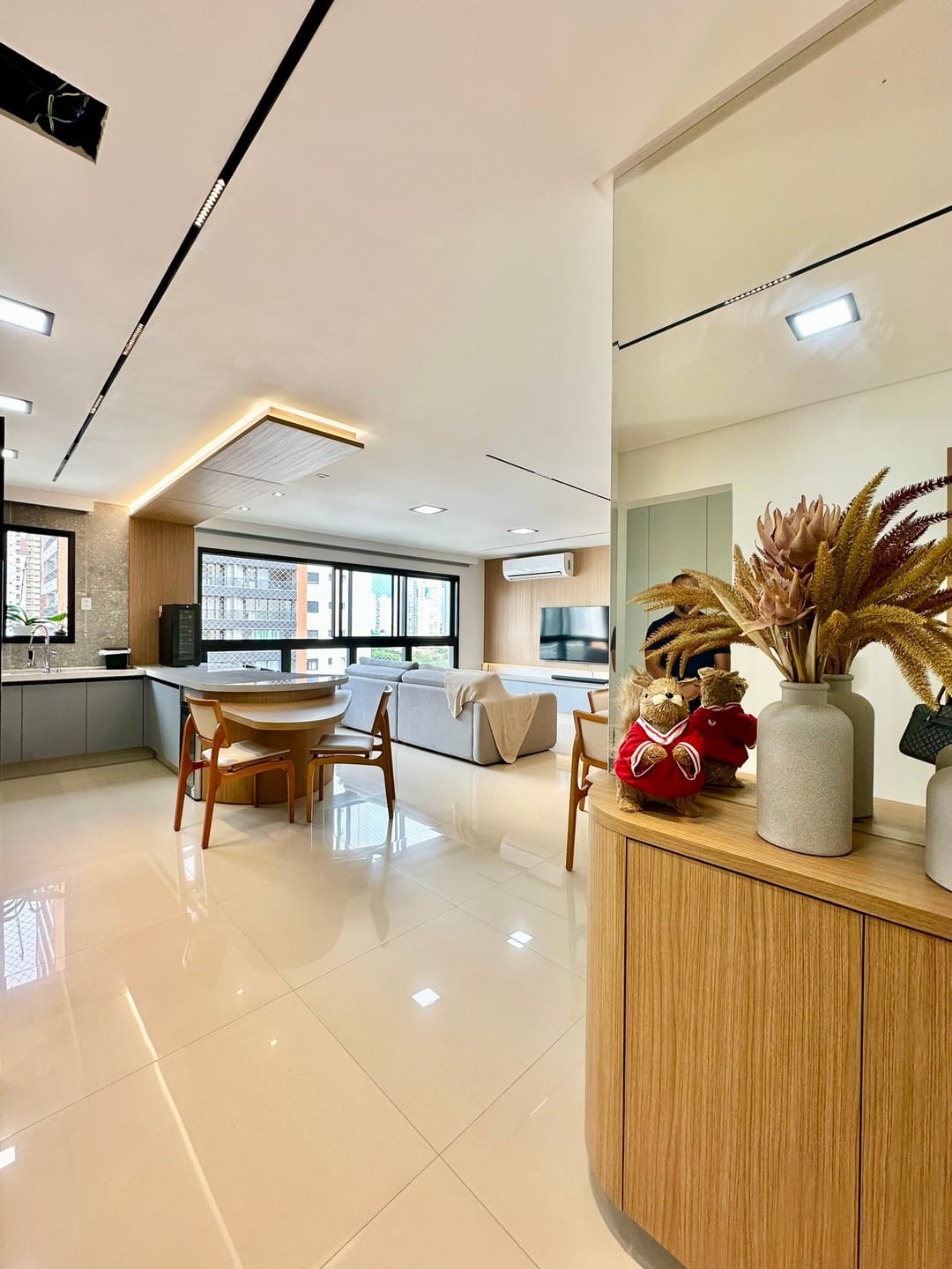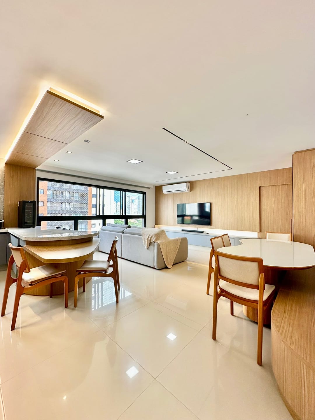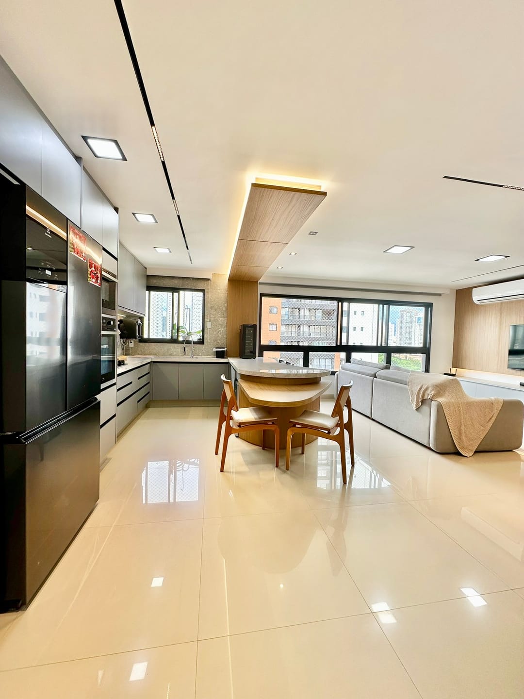 Sala para 2 ambientes integrados com a cozinha.