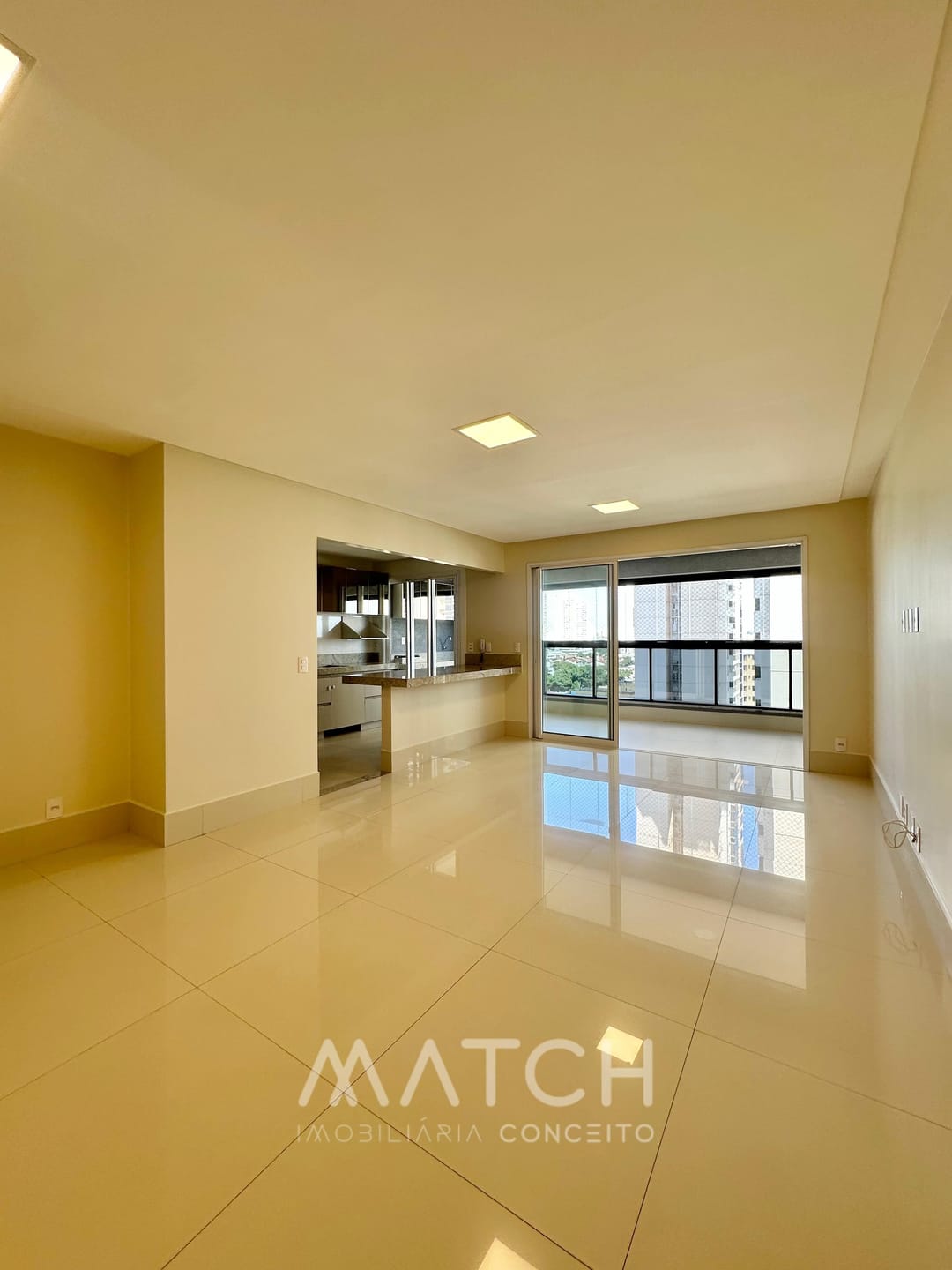 Sala para 3 ambientes integrados com a cozinha.