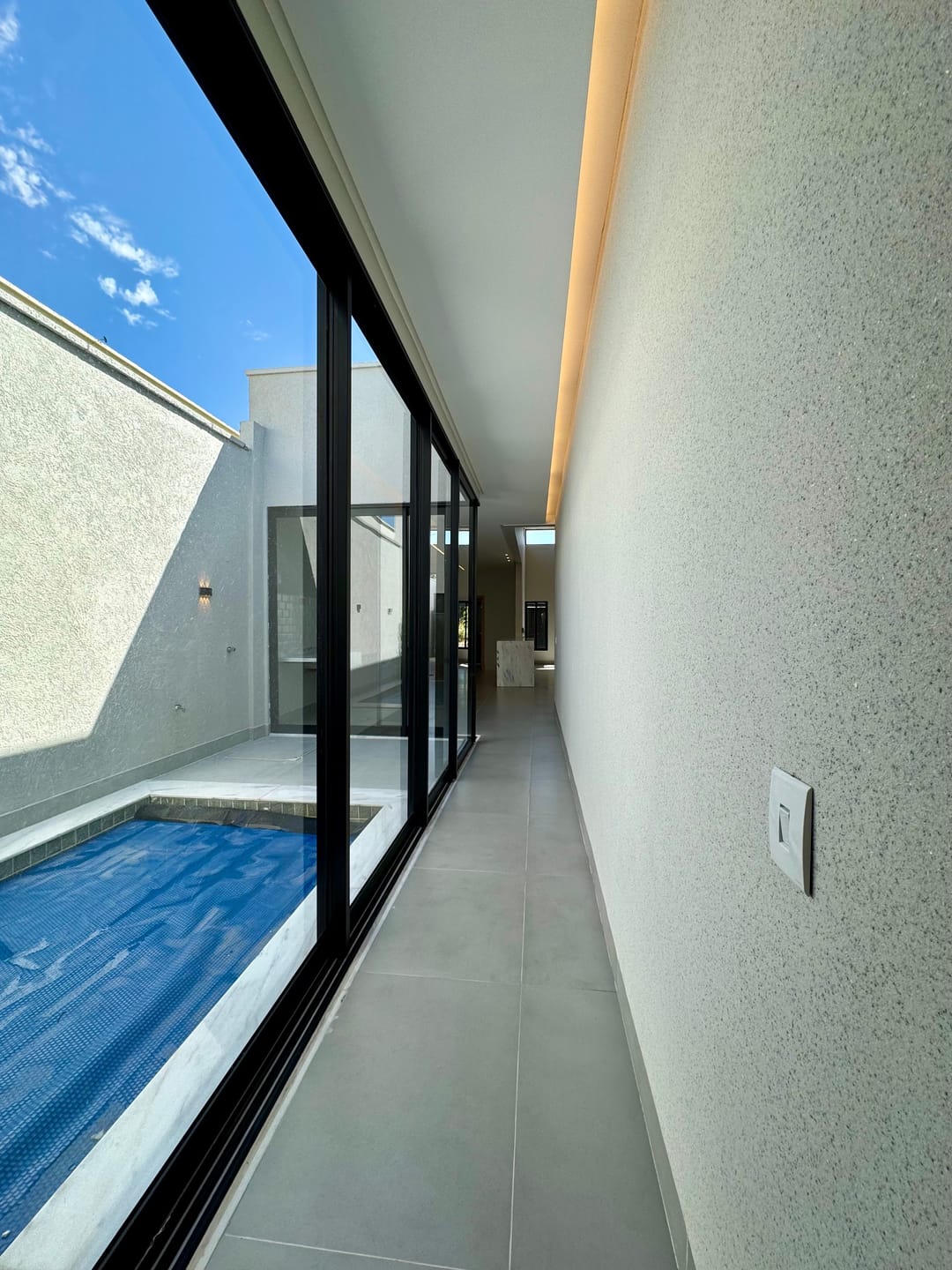 Com 180,50 m² de construção em terreno de 210 m², o imóvel oferece 3 suítes plenas, sendo 1 máster com closet, pé-direito duplo com sala e copa integradas, além de cozinha com ilha funcional e churrasqueira em inox. Conta ainda com lavabo e 2 vagas de garagem.