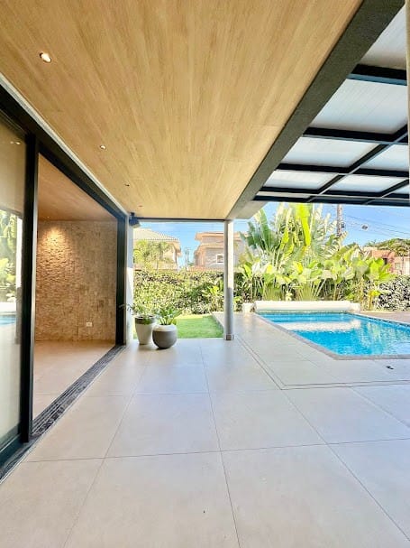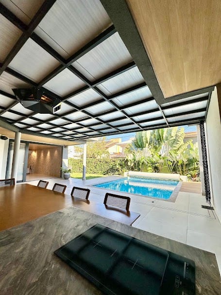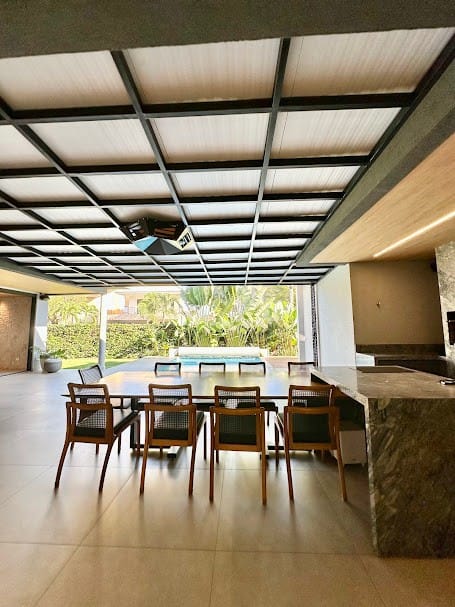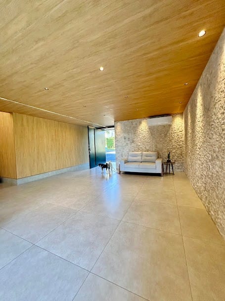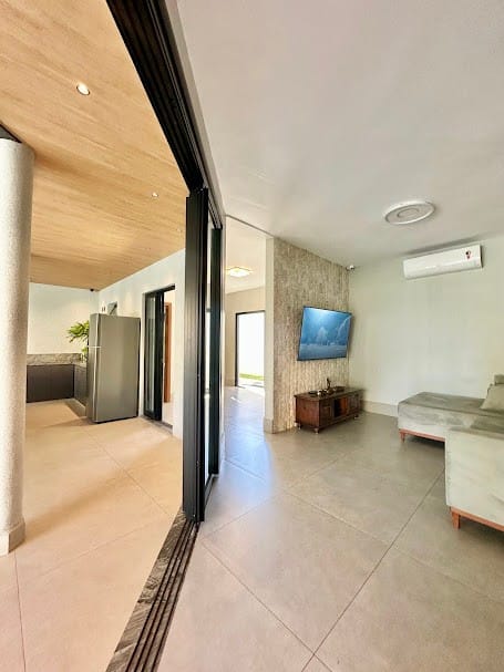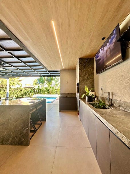 Projeto moderno com integração entre salas e varanda.