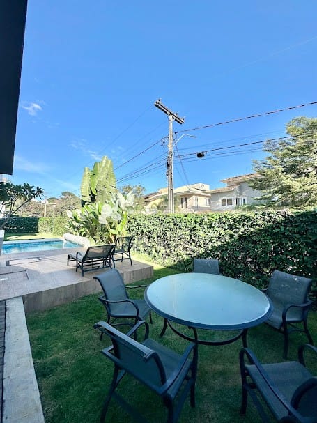 Área verde e banheiro de apoio externo.