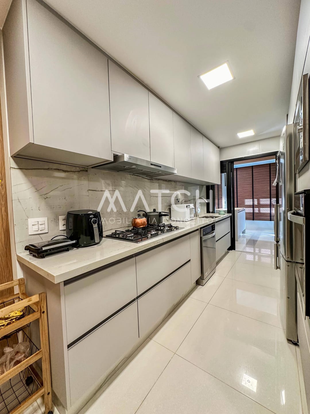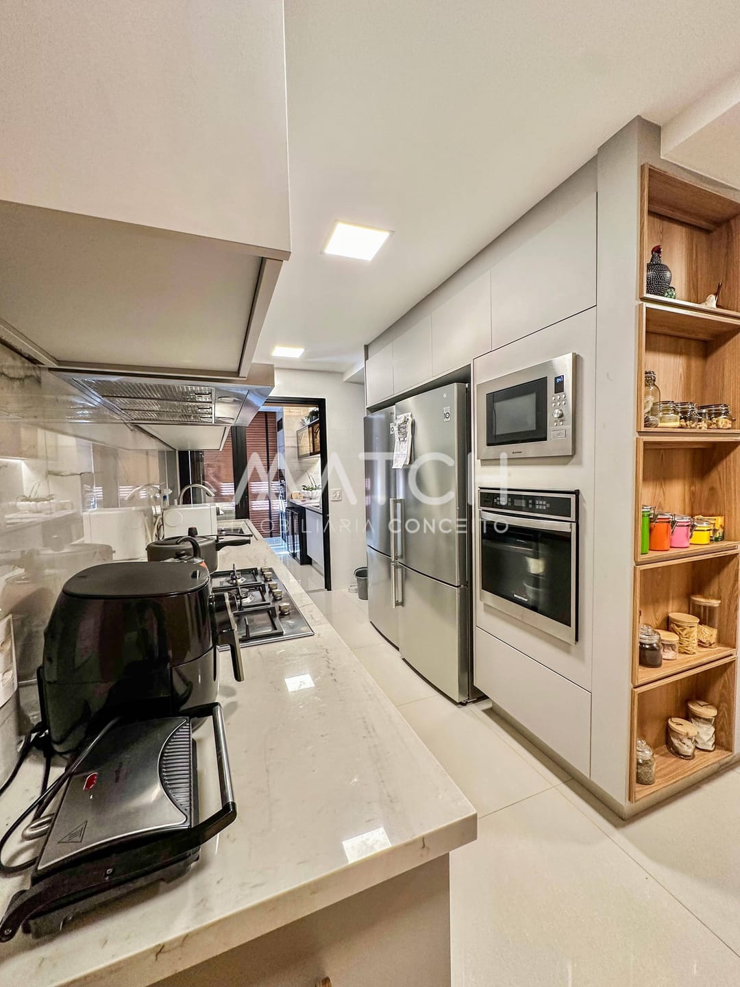 Cozinha rica em marcenaria e montada com coifa, cooktop, forno e microondas, boiler agua quente Bosh, persianas automatizadas de madeira na sala, iluminação interpan com algumas peças assinadas .