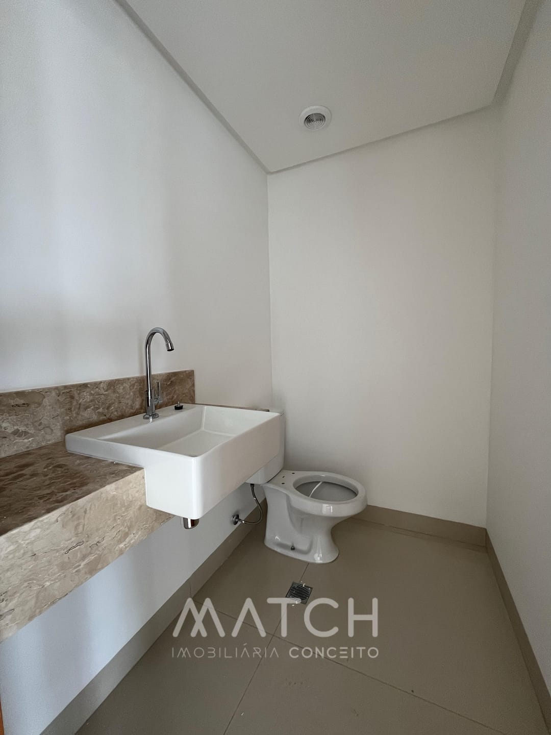 Andar alto e ampla sala de estar com lavabo, integrada a cozinha e jantar.