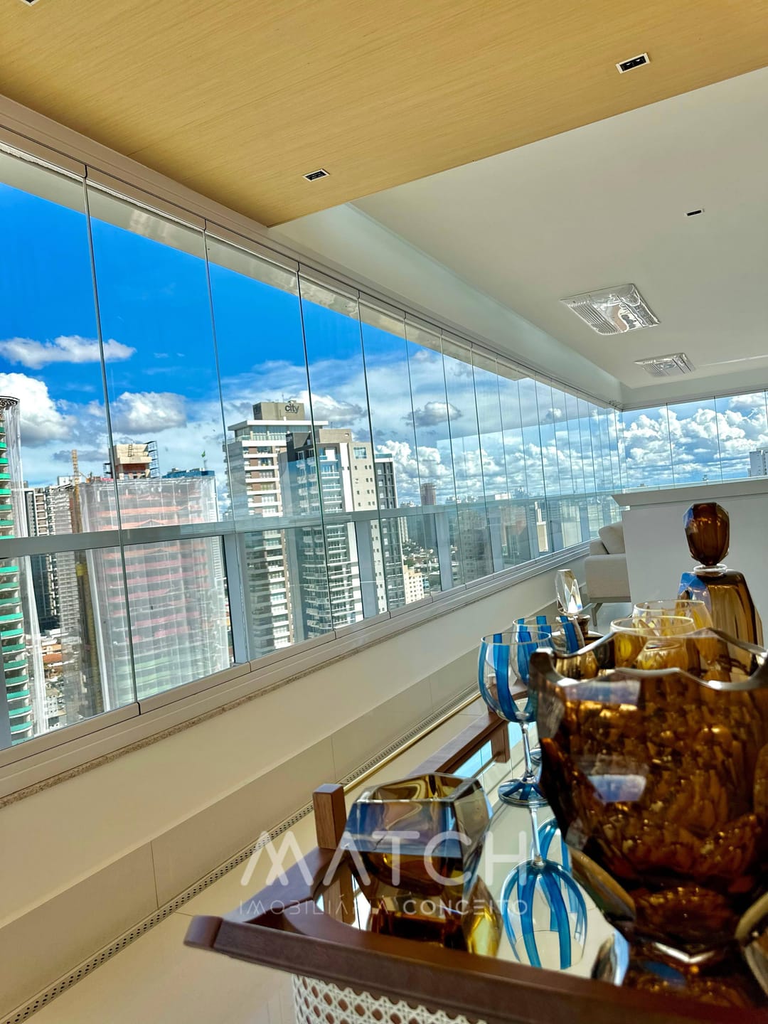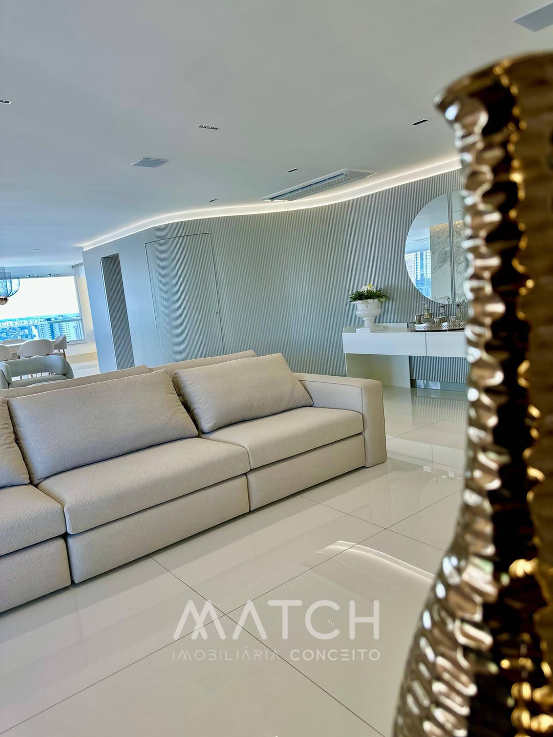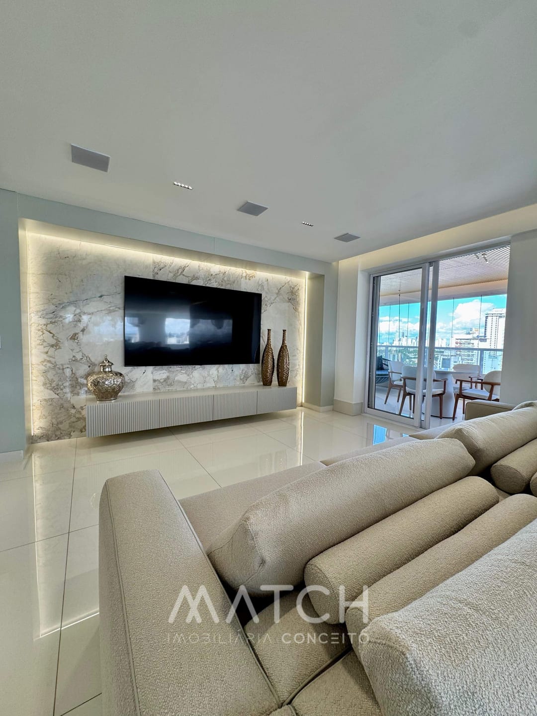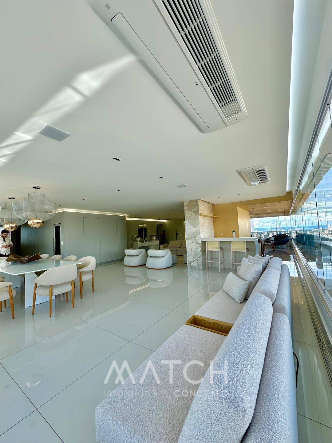 A varanda abraça todo apartamento.