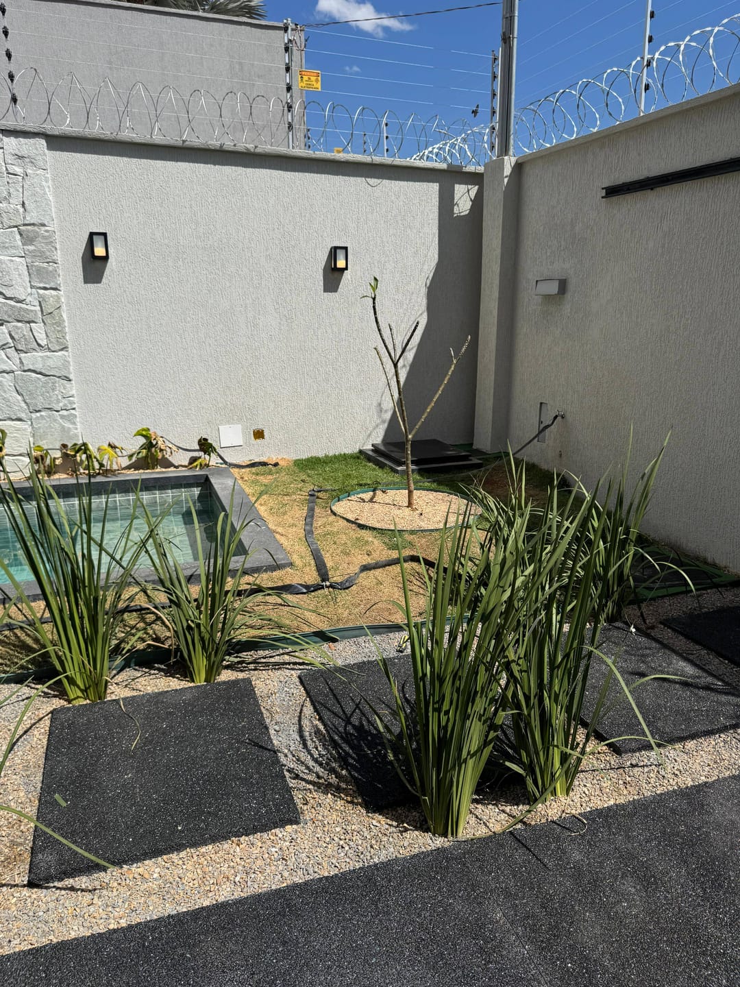 Segurança: cerca elétrica industrial e concertina.