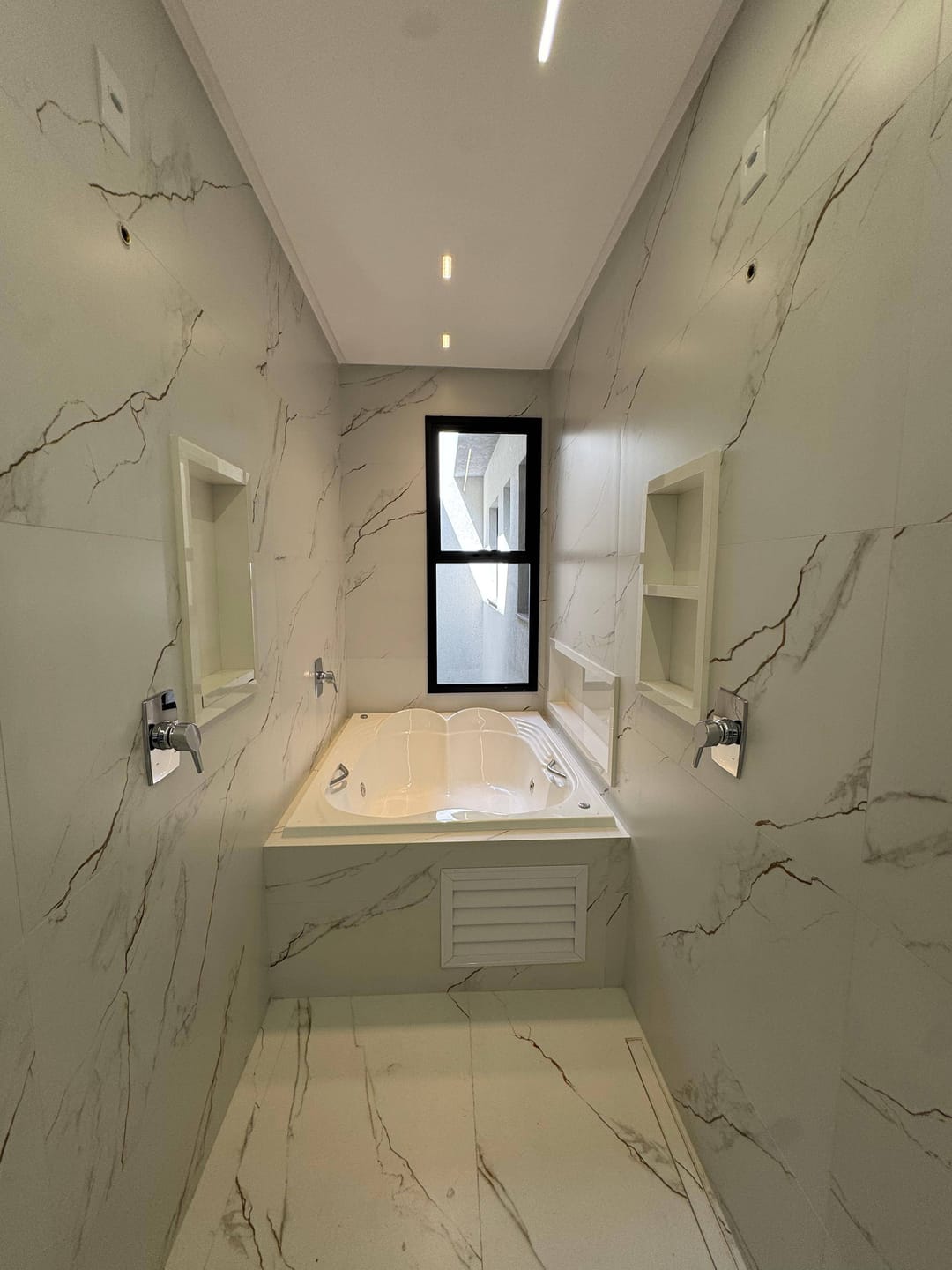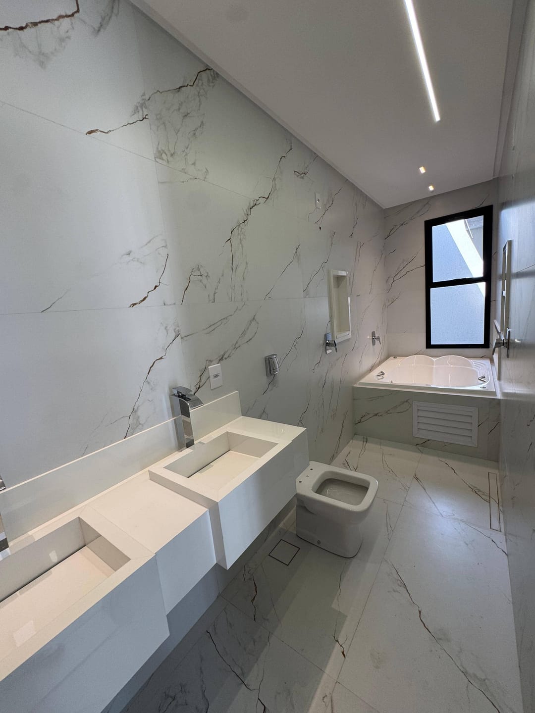 3 suítes (master com banheira de hidromassagem, bancada dupla e previsão para dois chuveiros);