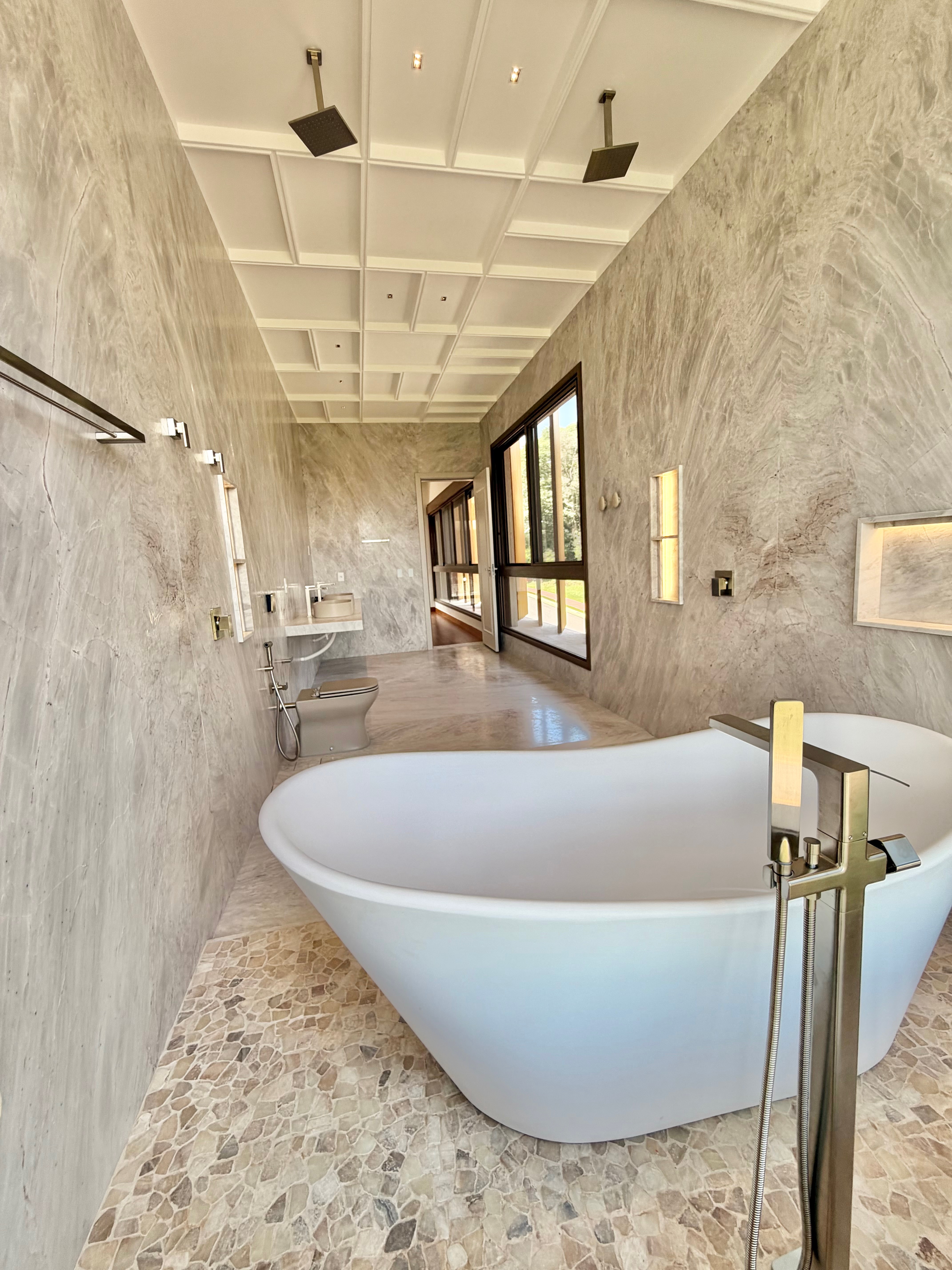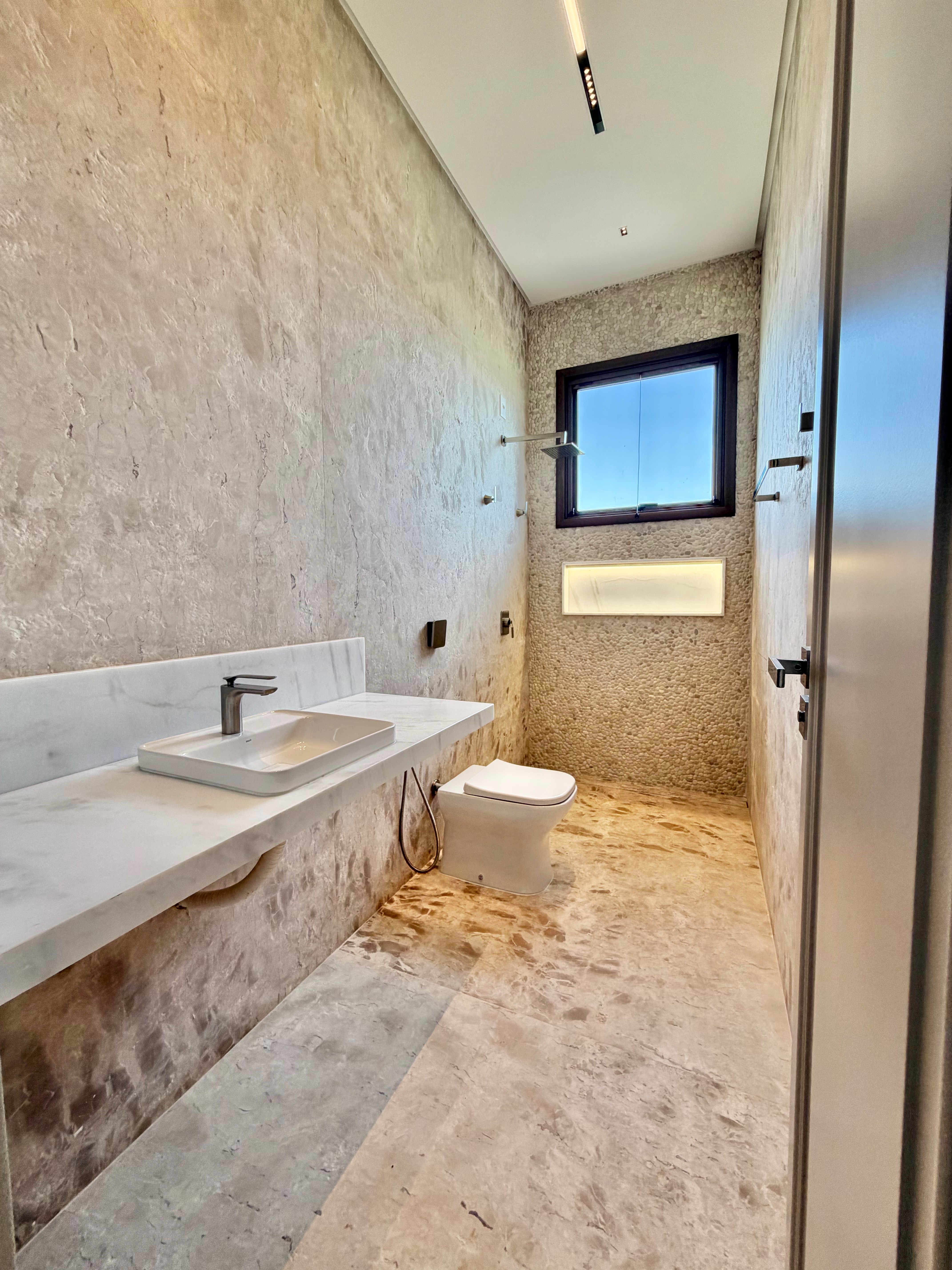 São 5 suítes confortáveis, sendo uma no térreo. A suíte máster entrega privacidade, amplitude e elegância na medida certa.