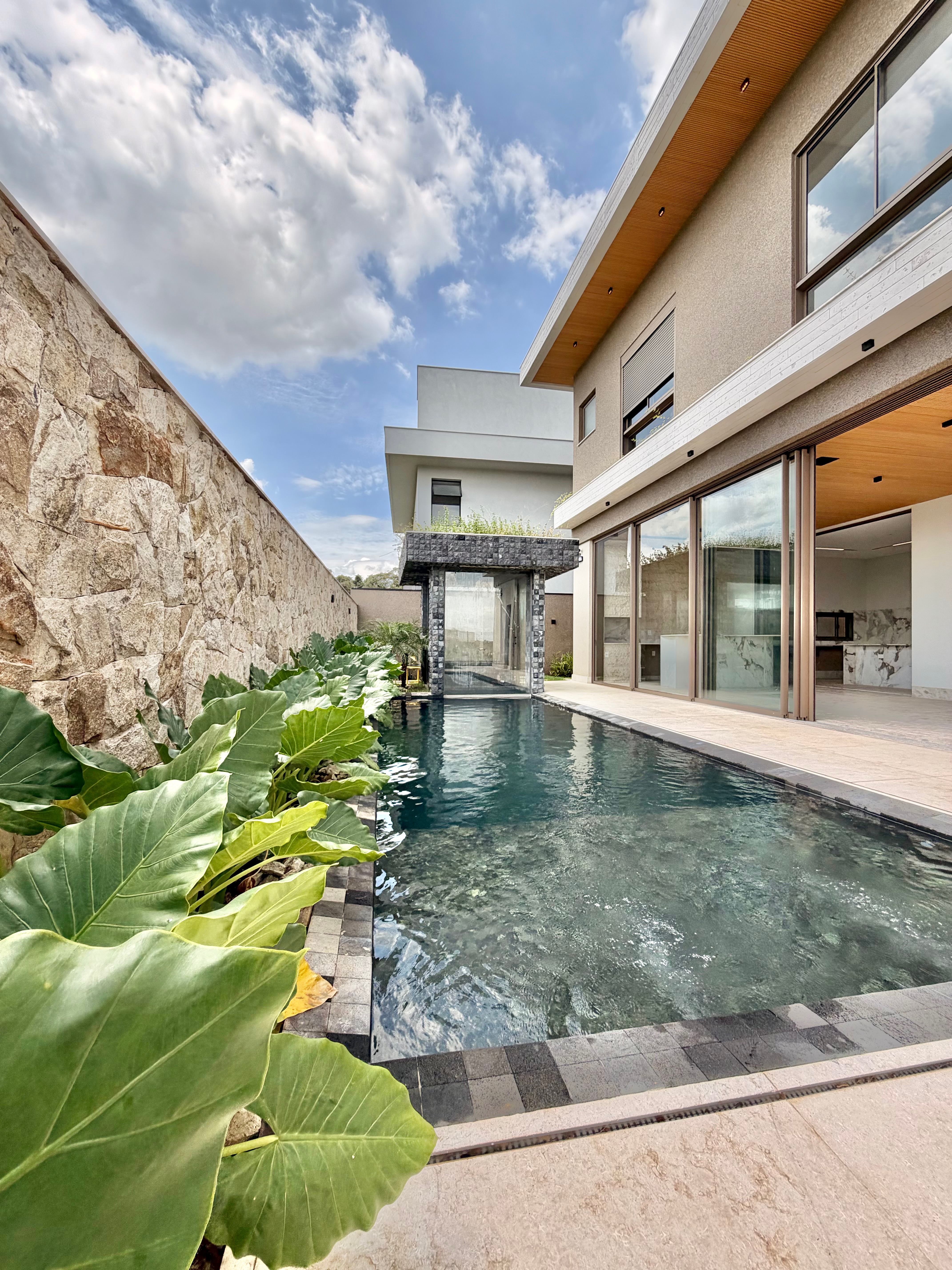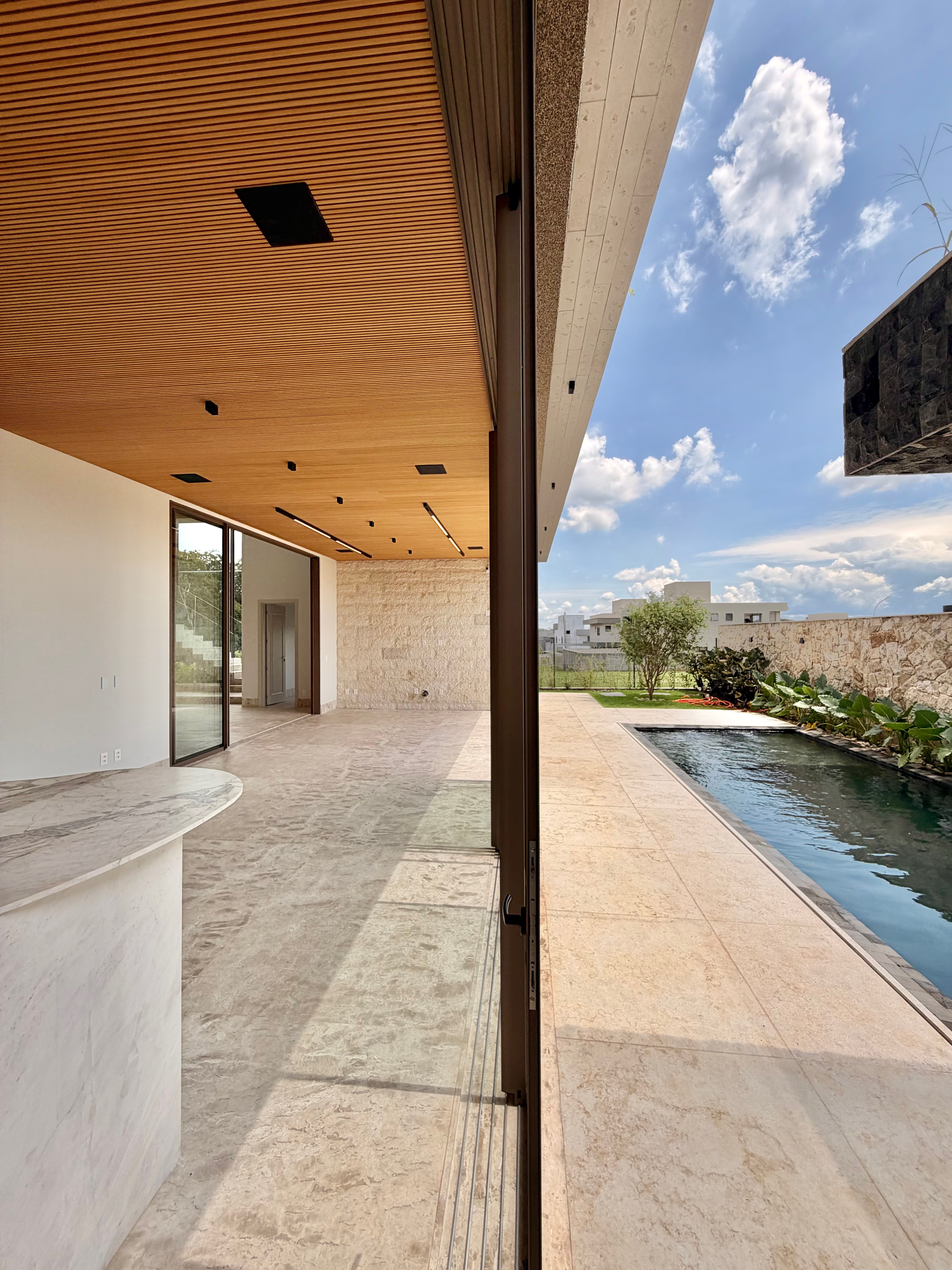Projeto contemporâneo marcado por linhas imponentes, amplas superfícies em vidro e abundante iluminação natural, criando ambientes integrados, sofisticados e atemporais.