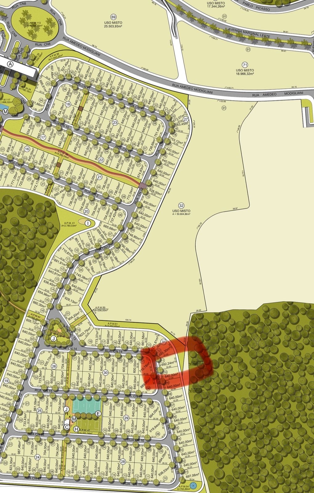Lote com fundo voltado para área verde, oferecendo mais privacidade e integração com a natureza.